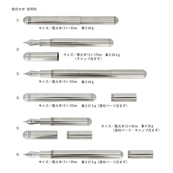 4つのパーツの組合せでペンの長さや重さを調節。